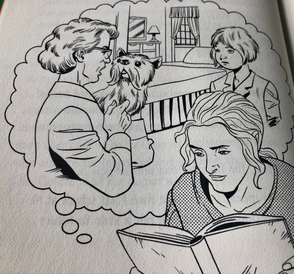 One of the strongest images in the adult fiction novel shows wartime destruction – and Kev used his skill to show Annie the heroine going back to her diary as an older woman.
