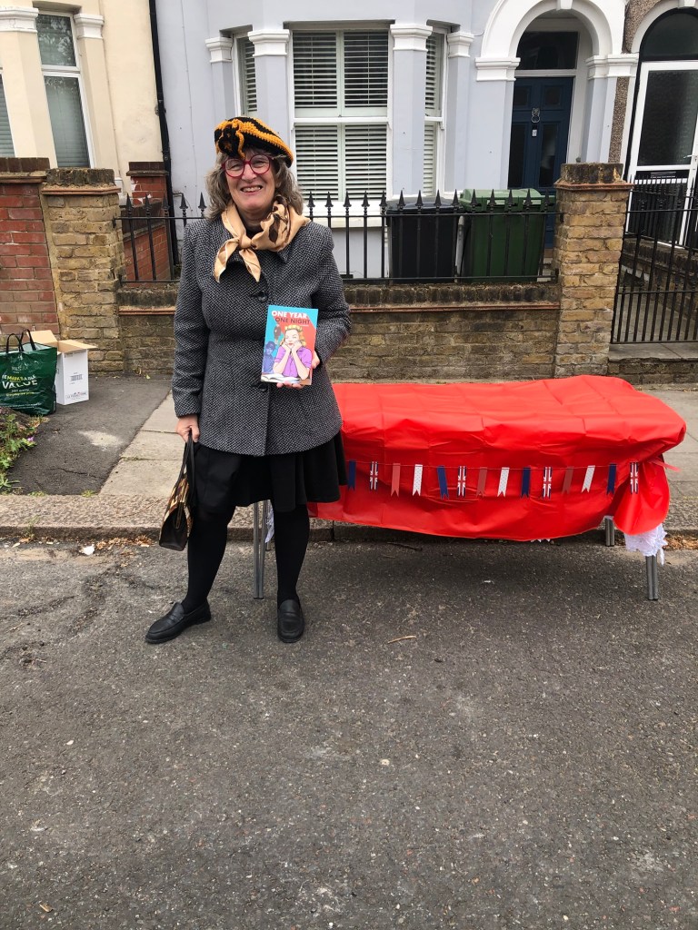 A VE day street party in London was the perfect place to sell our Young Adult novel-One Year One Night by SL Roman. That’s me and my writing partner Laura Meloni Bywaters, working under a pen name.