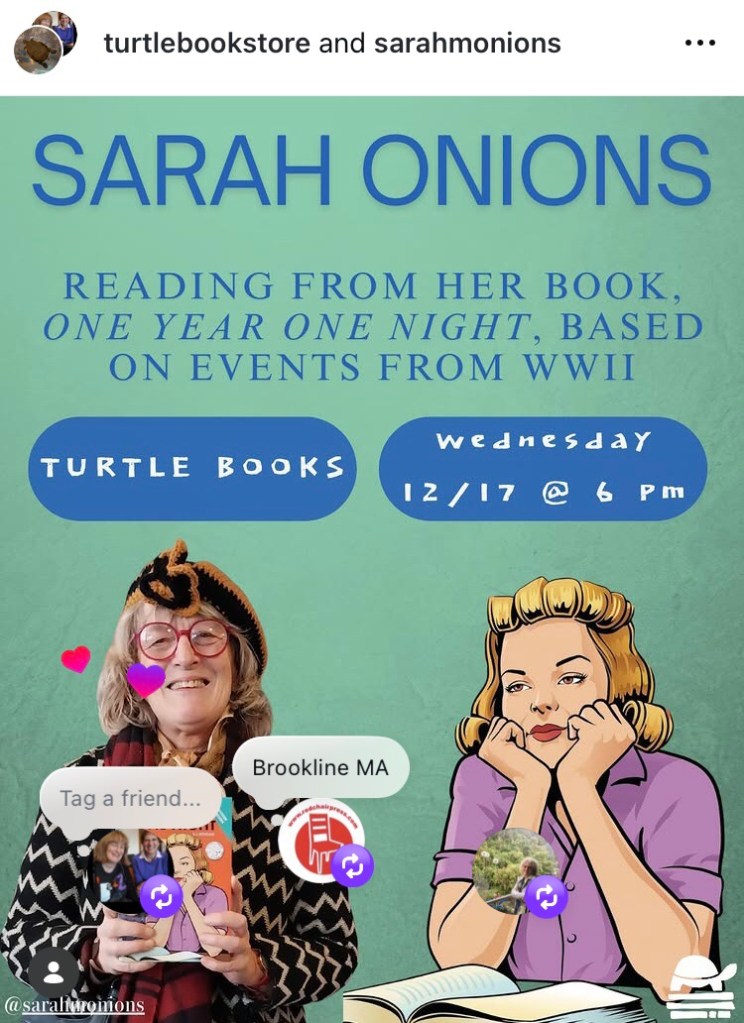 The purpose was to promote One Year One Night – the first Young Adult historical fiction by Sarah and her writing partner Laura Meloni Bywaters.